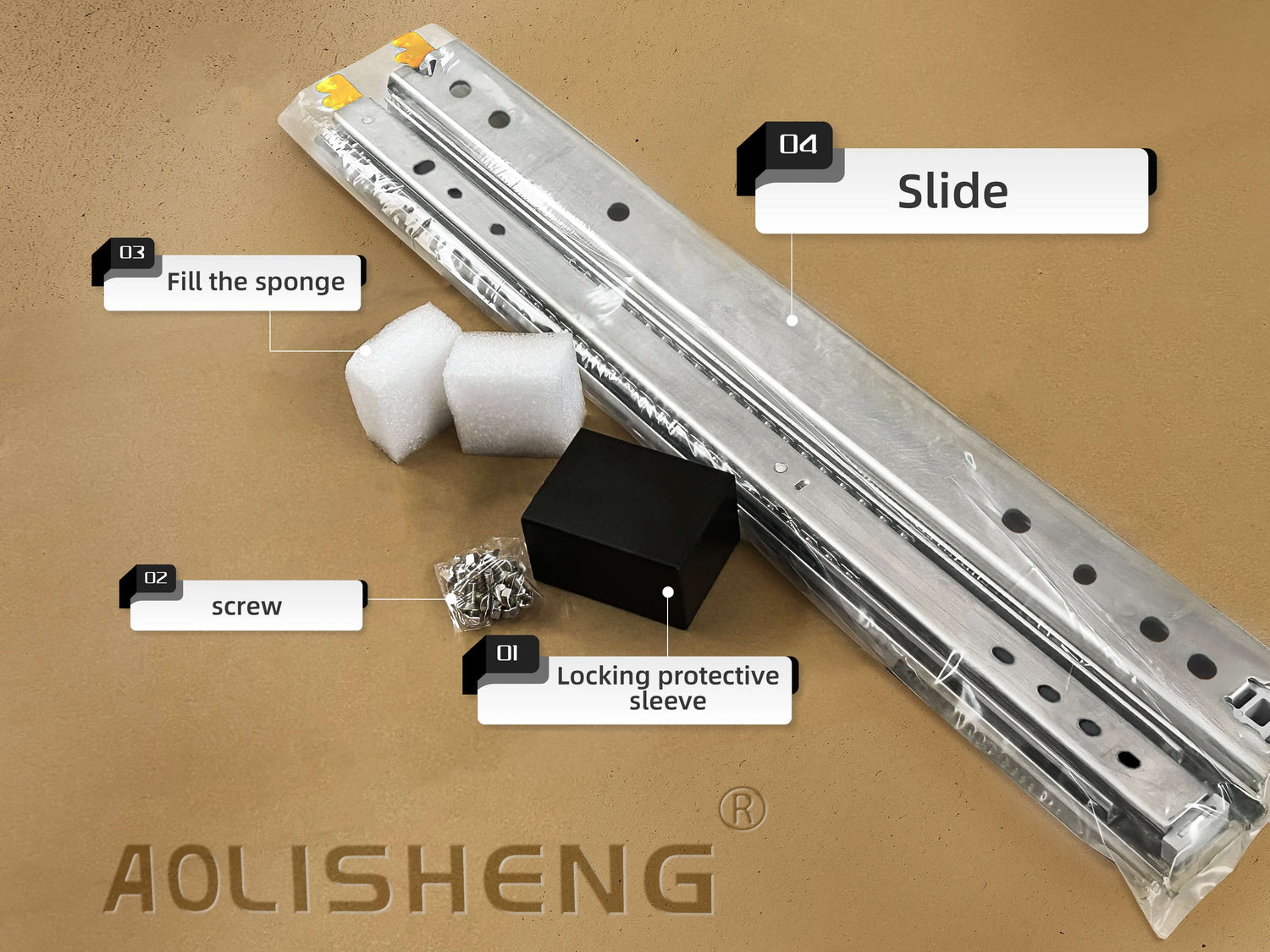 In the product packaging, for locked slide rails, we will have a lock protection cover to protect the lock and avoid damage to the drawer runners. Secondly, we will also provide screws for some special models of slide rails.