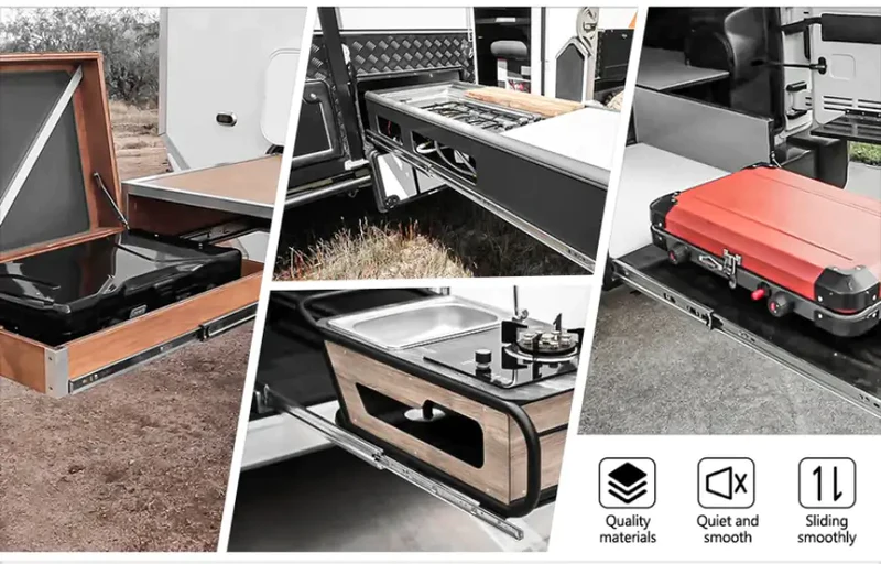 The heavy-duty drawer runners can bear a maximum load of 120KG and can bear the weight of two adults. They are suitable for application scenarios such as telescopic beds, RV magic boxes, and industrial drawers.