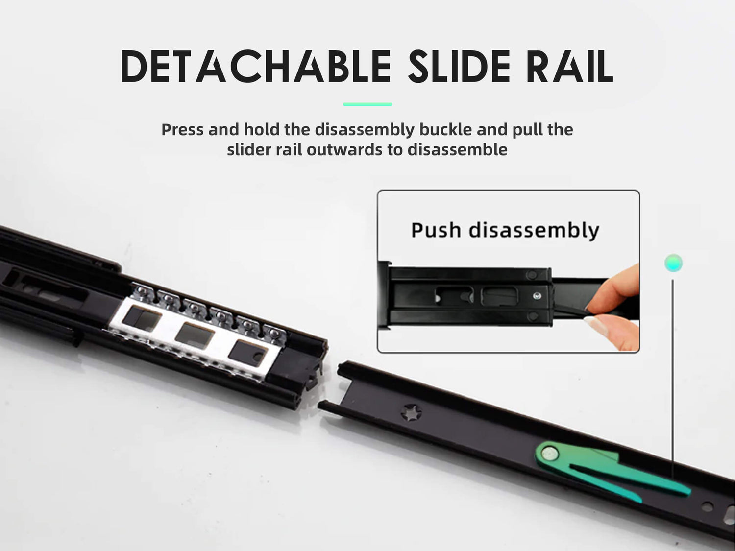 Light drawer slide rails are all detachable. Press the disassembly buckle and pull the slide rail outward to disassemble, which facilitates installation and subsequent maintenance.