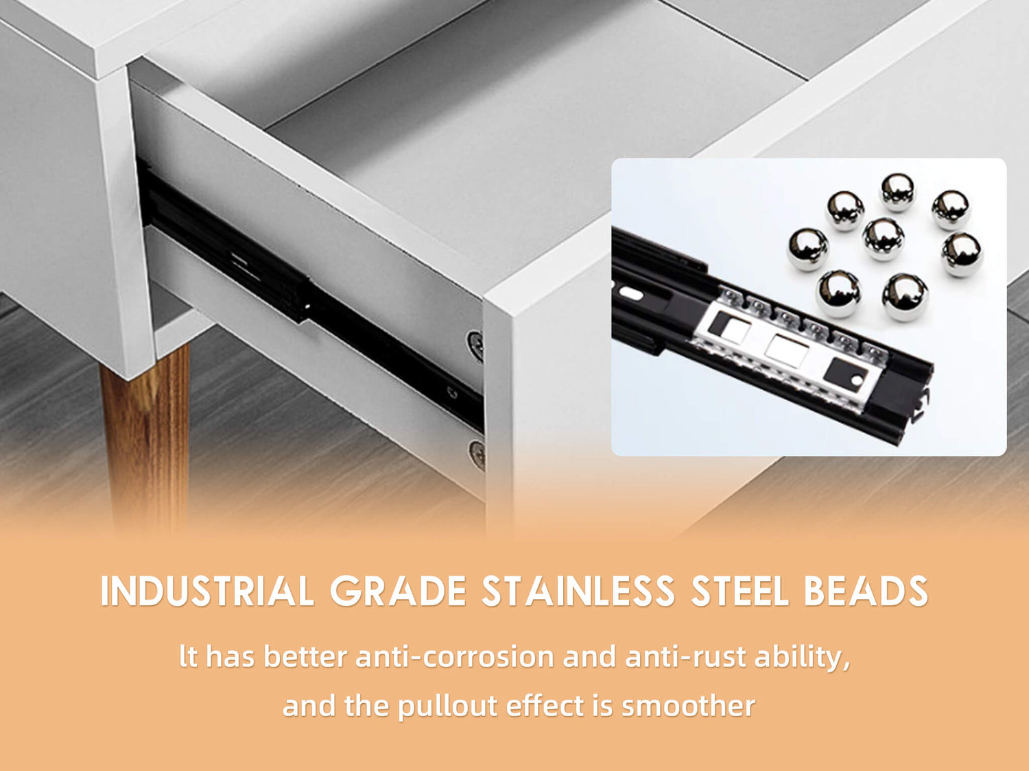 Industrial-grade ball bearings have better anti-corrosion and anti-rust capabilities, smoother pull-out effect, silent operation, and improved slide rail durability.