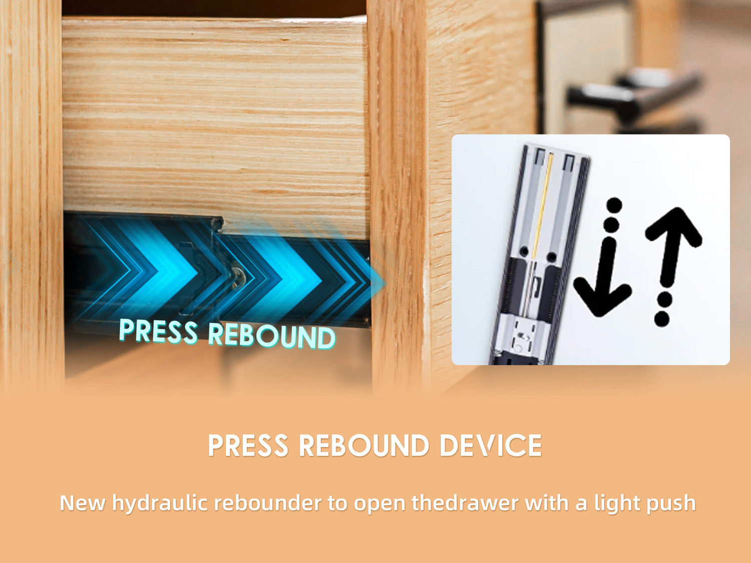 F1245 drawer slide has a press rebound function and a new hydraulic spring. You can open the drawer with a gentle push. Upgrade your slide.